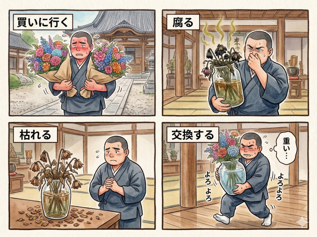 今、寺院様が抱えるお花の負担