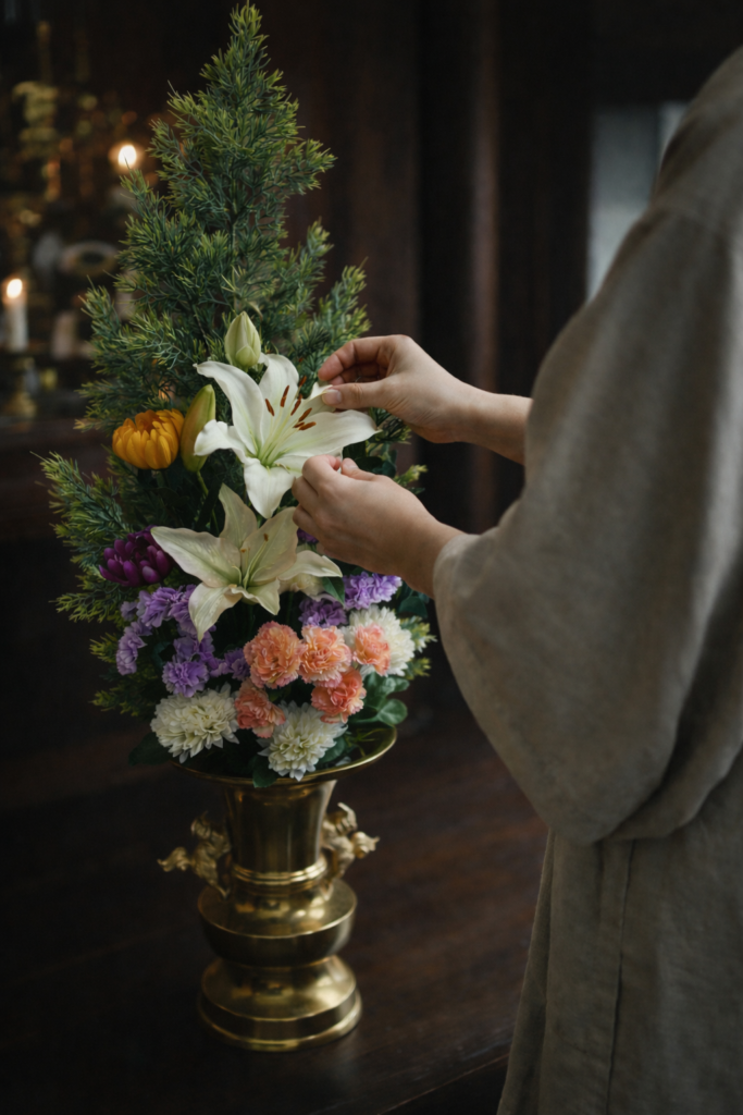 寺院のお供え花を